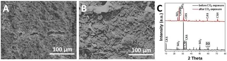 (B)暴露后水泥浆的SEM图像