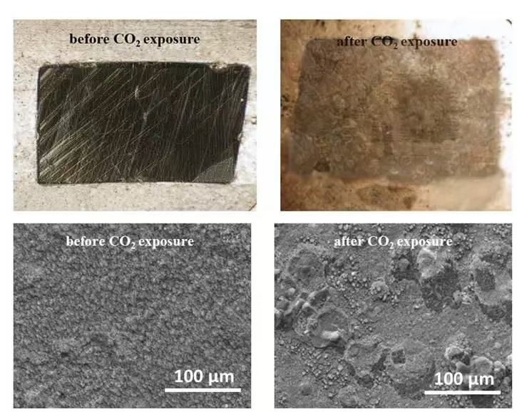 图2. N80钢表面在CO暴露前后的