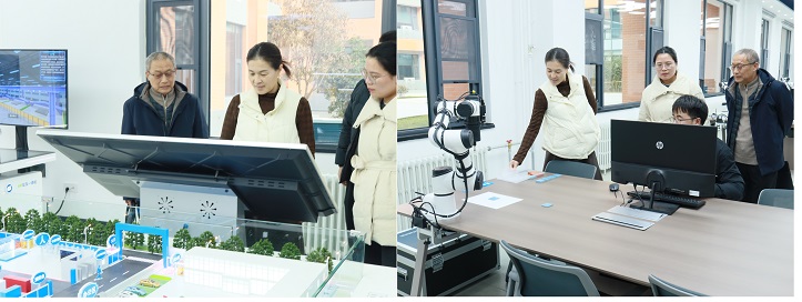 牛季收院长一行首先参观了智能建造学院数智建造创新实验中心,考察了实验室建设、实践教学、科研应用及校企合作情况,参观期间实验室教师进行了设备的操作和演示,牛院长对学院实验室的建设和成效给予充分肯定。
