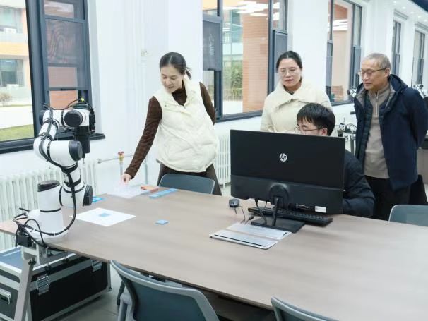 牛季收院长一行首先参观了智能建造学院数智建造创新实验中心,考察了实验室建设、实践教学、科研应用及校企合作情况,参观期间实验室教师进行了设备的操作和演示,牛院长对学院实验室的建设和成效给予充分肯定。