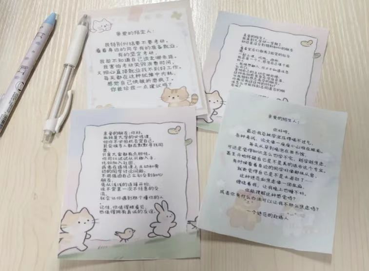 “请与我击掌”活动以简单互动传递鼓励,助力新生融入集体;“纸间小狗,暖心领养”送出150余只纸制小狗,增添校园趣味与爱心传递。11月“树洞漂流,纸短情长”活动收集匿名书信86封,帮助23名学生倾诉困惑、缓解压力;“笔下星光,信语寄情”征集致自己、同学或师长的书信41份。