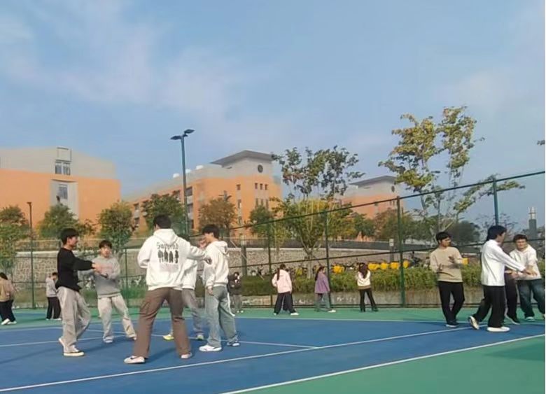 11月“户外之境,心灵共鸣”活动设置“破冰游戏”“接力挑战赛”,60余名学生在协作中舒缓情绪、增进友谊;“摇出心能量”活动通过“摇卡牌”开展情绪讨论,同学们在轻松互动中卸下疲惫;“关爱心灵—健康同行”拓展活动设置“两人三足”“信任背摔”等项目,学生在团队游戏中培养信任与协作能力,提升心理韧性。