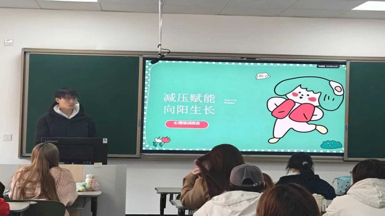 本次“减压赋能,向阳生长”心理培训班会顺利开展,同学积极参与。班会帮助大家理性认知学业、人际等压力,掌握呼吸放松、运动宣泄等实用减压技巧,有效缓解了焦虑情绪。同学们在交流中互相启发,增强了情绪调节能力与心理韧性,也拉近了彼此距离,为以更积极乐观的心态面对大学生活积蓄了力量。