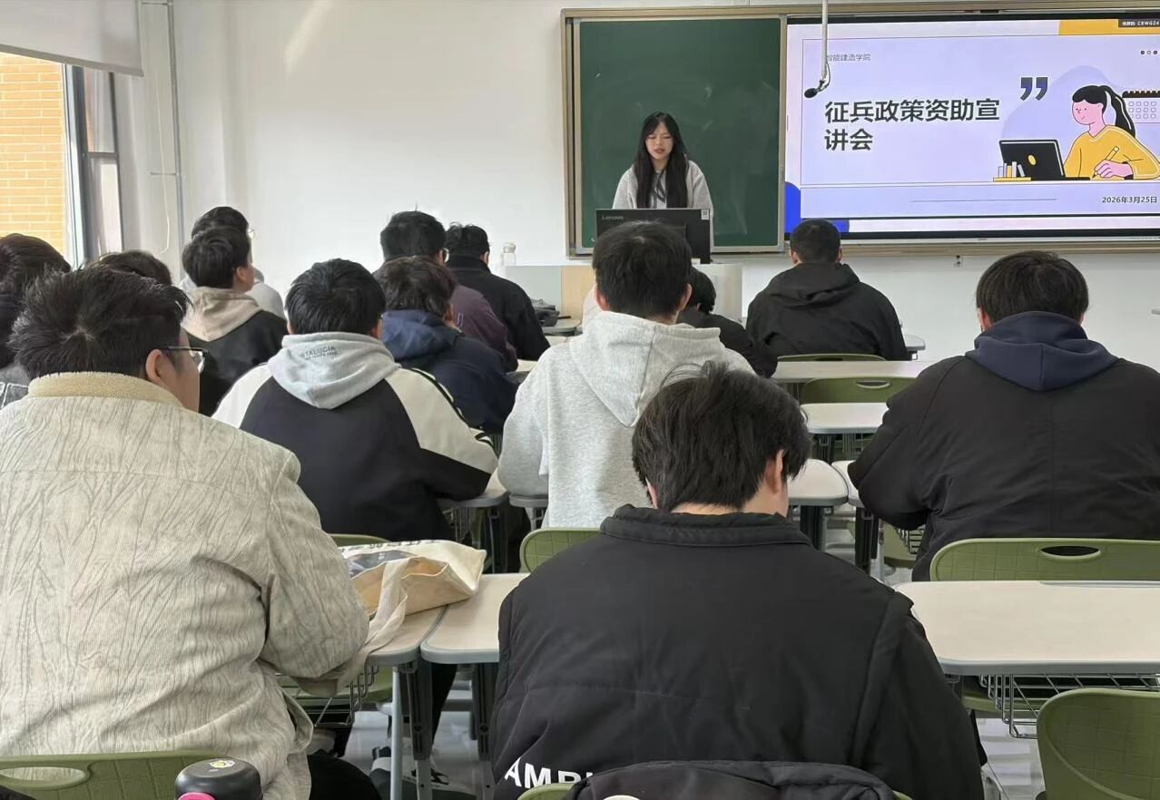 为鼓励广大青年学生携笔从戎、报效祖国,郑州商学院智能建造学院专项开展征兵资助政策宣讲活动。宣讲人重点解读大学生应征入伍学费补偿、国家助学贷款代偿、退役复学学费减免等资助利好政策,同时讲解入伍奖励、家庭优待、升学就业扶持等相关福利,详细说明征兵报名流程与注意事项。此次宣讲让同学们全面了解征兵资助政策,激发了大家参军入伍的热情,引导学生将青春理想融入国防建设,学院也将持续做好参军学生服务保障工作。