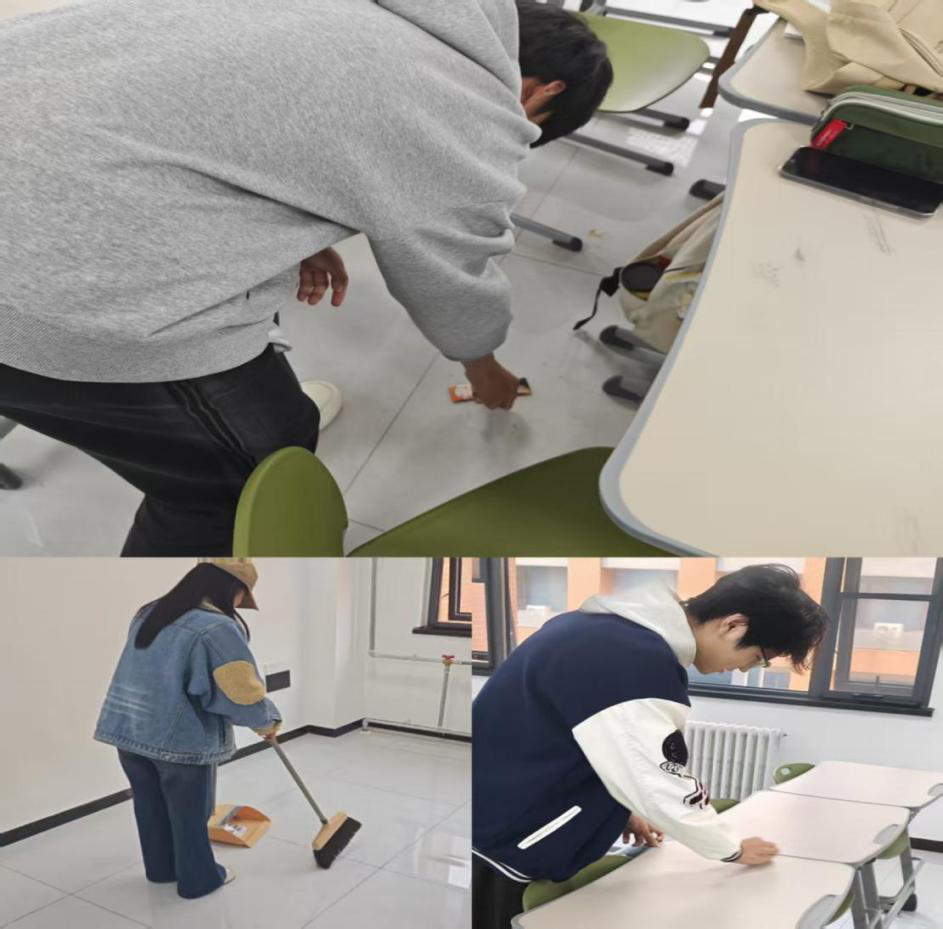 “新学期,新风尚,礼修身,行至远。”本周,郑州商学院智能建造学院开展“校园焕新礼仪”实践行动,聚焦校园清洁、文明举止等日常细节,推动文明礼仪融入生活场景。同学们主动捡拾校园角落的垃圾,维护公共环境整洁;在教室自觉擦拭桌面、清理地面杂物,为下一堂课留出整洁学习空间;主动扫地除尘,营造干净有序的课堂环境。这些看似微小的举动,正成为校园中悄然传递的文明信号。随手之间,是对他人的尊重,也是对校园的热爱,更在无声中塑造着共建共享的校园文化。礼仪不在远处,就在举手投足之间,融入日常,成为习惯。