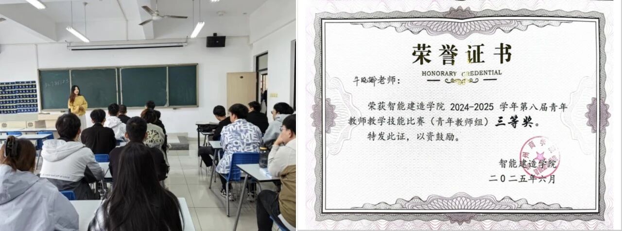 她注重理论与实践衔接,在《工程识图大作业》等实践课程中,强化学生图纸识读、结构分析与实操能力,引导学生从“懂理论”向“会应用”转变。同时,她积极探索教学方法创新,不断优化课堂设计,提升教学感染力与实效性,凭借扎实的教学功底与良好的课堂表现,荣获智能建造学院2024—2025学年第八届青年教师教学技能比赛三等奖,以实绩展现青年教师的教学风采。