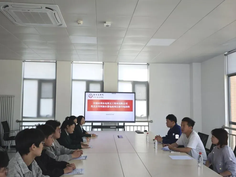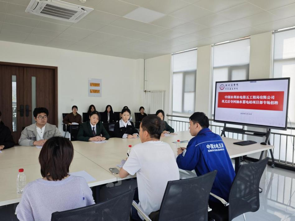 为进一步推进高校毕业生就业工作精准化、常态化,深化产教融合与校企合作,4月16日,中国水利水电第五工程局有限公司巩义后寺河抽水蓄电站项目部走进郑州商学院智能建造学院,针对27届毕业生开展专场面试活动。