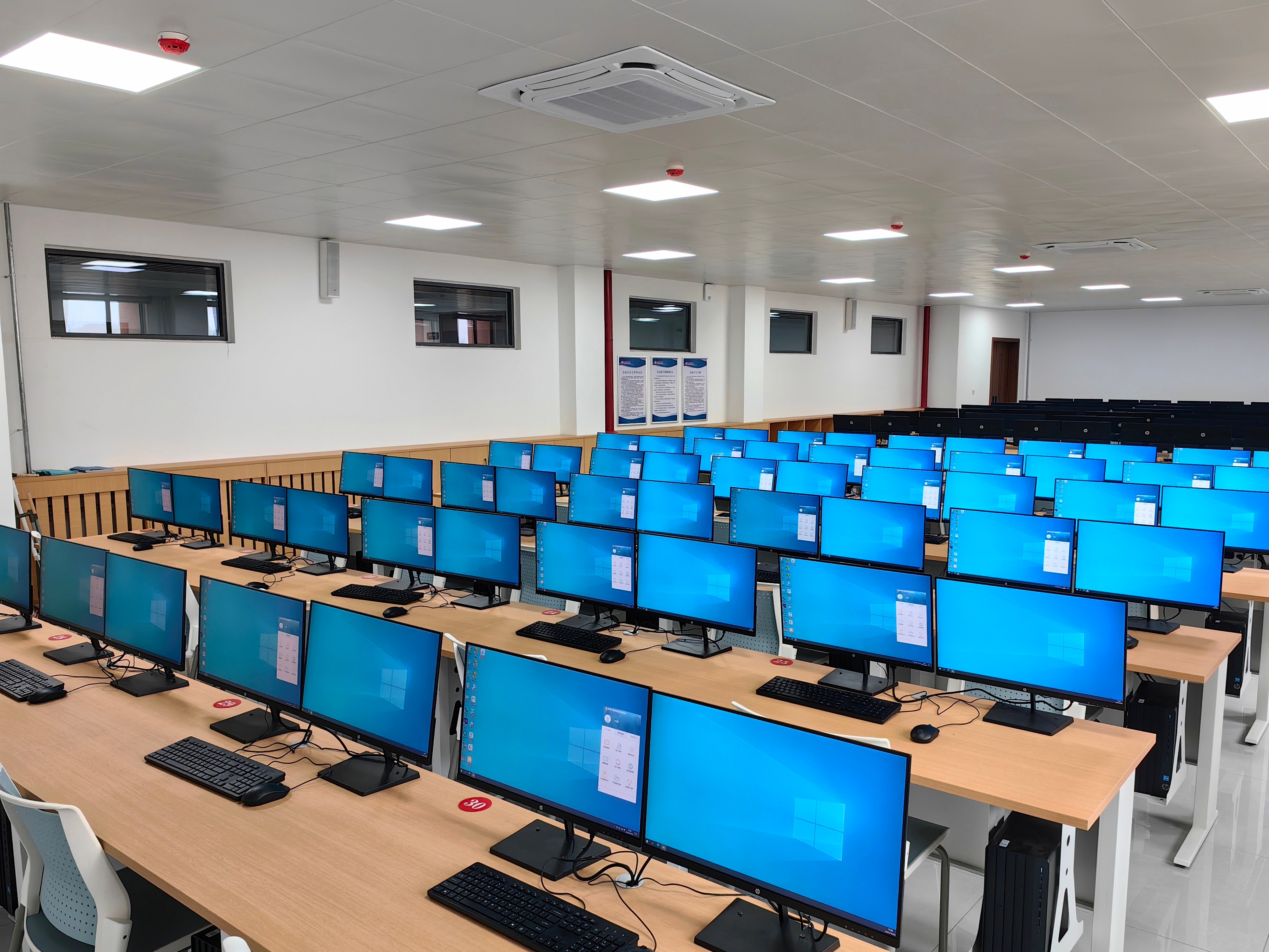 MC207数智设计实验室(三)是一个现代化计算机实验室,注重为学生提供可靠的硬件基础和全面的软件支持。实验室包括65台高性能计算机,性能稳定可靠。在软件配置上,实验室构建了广泛而专业的应用生态。除了必备的WPS Office办公套件和C语言等编程环境外,重点安装了工程设计领域的核心软件,如Auto CAD、Autodesk Revit,以及广联达的云计价和土建计量平台,同时涵盖了Navisworks、斑马进度、PKPM、YJK、桥梁博士和Visual Studio等。MC207数智设计实验室(三)能够灵活应对计算机基础教学、软件开发、建筑工程制图、工程造价管理及结构分析等多种教学场景,为师生提供了一个功能全面、运行高效的教学与实践环境。