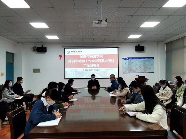 为实现我院本学期既定工作目标,保质保量完成本学期教学任务。11月17日下午,我院在1号楼112会议室召开第四次教学工作会议暨期末考试工作部署会,院长杨山峰,教学秘书胡乃峰以及全体无课教师参加本次会议。