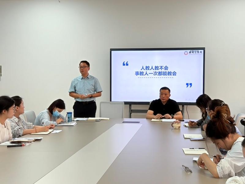 会上,新入职教师首先依次进行自我介绍,他们满怀热忱,为学院注入了新鲜血液。随后,教学干事曹君秀老师详细介绍了开学前后的注意事项。内容涵盖教学场地的全面检查、开学第一课的准备,并对期初教学检查事项进行了细致说明,保障教学工作的规范性与严谨性。接着,教学质量监控督导专员薛潇雅老师围绕教学规范进行布置:一是教师课堂管理,明确提出“三带一提”要求,为课堂教学顺利开展奠定基础。二是教学基本要求,包括板书规范清晰、加强师生互动、严格学生考勤以及维护课堂纪律等,全方位提升教学质量。三是课后要求,教师需认真填写上课情况,及时为学生答疑解惑。