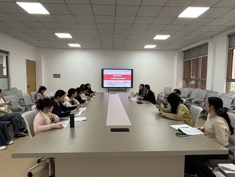 为进一步做好2026届本科毕业论文选题工作,切实提高毕业论文选题质量,10月15日下午,我院在1号楼112会议室召开2026届本科毕业论文选题审核会。特邀学校教学质量监控督导员杨尚军教授作专题指导,我院教学质量监控督导专员薛潇雅、各教研室主任、教师代表及论文专项负责人吕若冰共同参会,会议由薛潇雅老师主持。