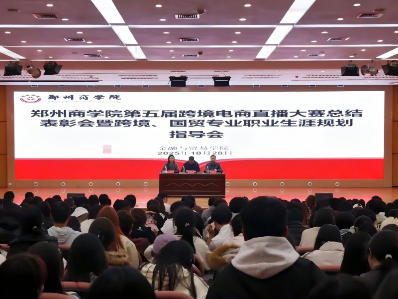 为表彰先进树立榜样,营造拼搏进取、敢于创新、勇于超越的优良学习氛围,10月28日晚,郑州商学院于图书馆一楼报告厅隆重召开“第五届跨境电商直播大赛”总结表彰会。河南瀚纳环保科技有限公司总经理孟杰、学院院长梁鹏、党委书记吕鹏、副院长季艺出席会议,国贸、跨境电商相关专业学生代表共同参会。本次会议由跨境教研室主任李国艳主持。