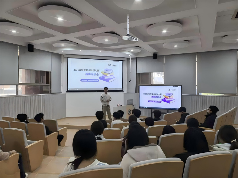 学院组织了职规赛赛事培训会,老师对赛事方案做了全面讲解,把大赛的目标和核心要求讲得明明白白。老师还结合当下的政策方向与就业趋势,拆解了方案里的细节,给同学们理清了方向。