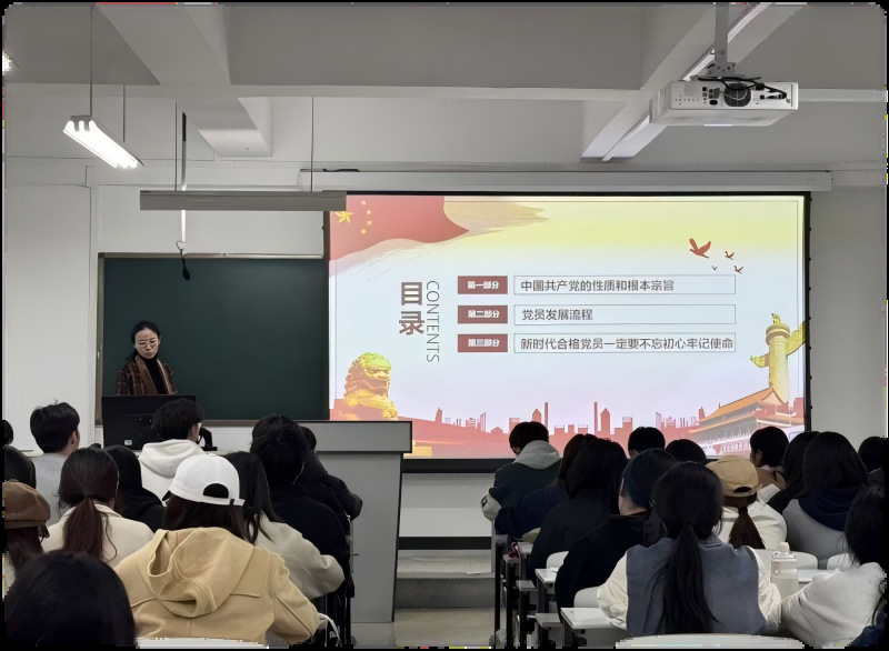 金贸学院第四十一期入党积极分子培训班第五次党课于2025年11月4日晚在1号教学楼301教室顺利举行。本次党课特邀学院党委组织委员王柳雅同志主讲,全体培训班学员参加学习。