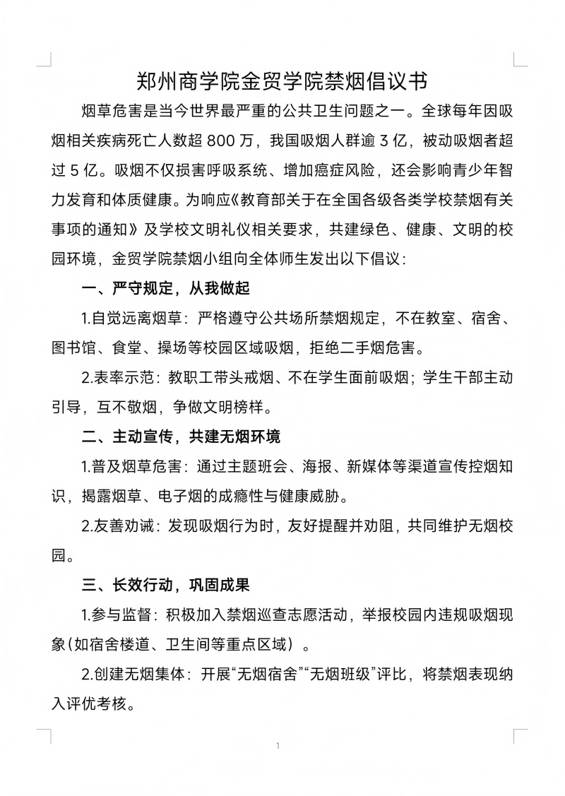 随后,辅导员雷雲翔老师宣读了《金贸学院校园禁烟工作实施方案》,明确三项核心任务: