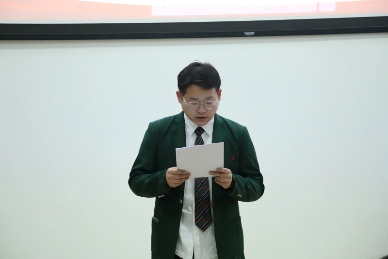 优秀成员代表杨凯随后分享了其在宣讲实践中的收获与成长。柴英铭老师充分肯定了上一届成员的工作成果,并鼓励新成员深耕内容、创新形式,提升宣讲感染力。最后,吕鹏书记作总结发言,强调“薪火”宣讲团是思政育人的重要阵地,勉励全体成员不忘初心,让爱国情怀与红色基因在青年中生生不息。