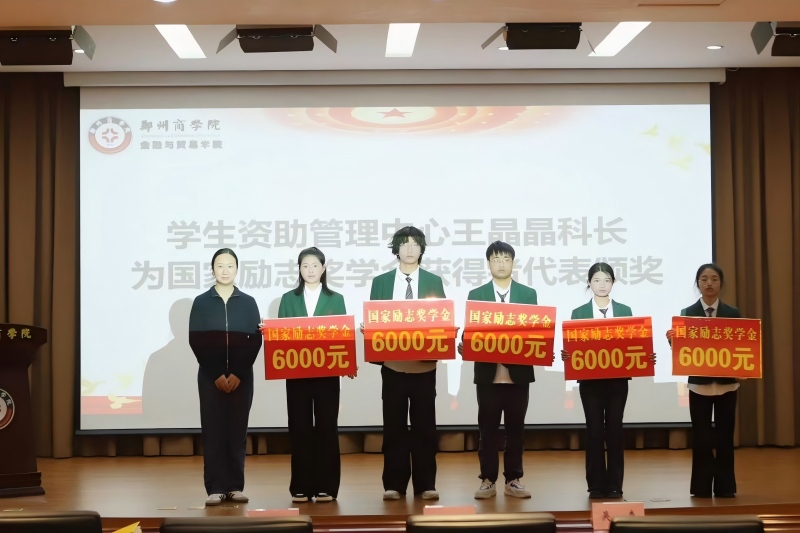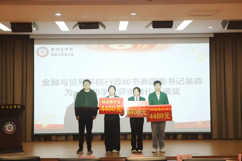 (团委书记兼行政秘书吴森为国家一等助学金颁发奖牌)