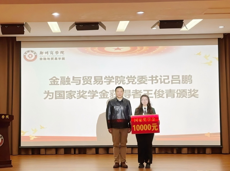 (党委书记吕鹏为国家奖学金获得者颁发奖牌)