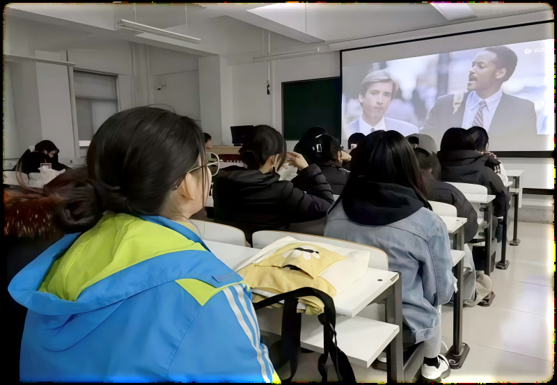 同学们随着镜头走进克里斯·加纳的生活。当他投资失利、妻子离去,被迫住公厕、挤收容所,甚至卖血维生,却仍带着儿子流浪街头、咬牙坚持实习时,教室一片安静。有人悄悄拭泪,有人陷入沉思——克里斯的坚韧与挣扎,深深触动了每一个人。