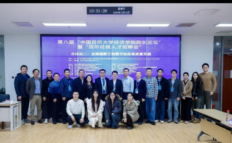 12月13-14日,由北京大学经济学院举办的第八届“中国百所大学经济学院院长论坛”在北京隆重举行。论坛以“AI时代的经济学教育与研究范式创新”为主题,紧扣人工智能技术浪潮对经济学研究范式变革、学科前沿突破及人才培养标准的深远影响,旨在为服务中国式现代化建设、培育适配人工智能时代需求的新型经济学人才凝聚学界共识、汇聚专业智慧。此次论坛由开幕式、第三届“孙尚清发展知识研究与交流奖”颁奖仪式、主题演讲、圆桌论坛、国际参会嘉宾代表致辞、百所经院人才招聘会、平行分论坛、闭幕式等环节组成。来自全国218所院校的19位校长和242位院长出席。我校副校长刘升阳教授带领与兰州财经大学联合培养的研究生秦冰洁、崔颖琦同学受邀参会。