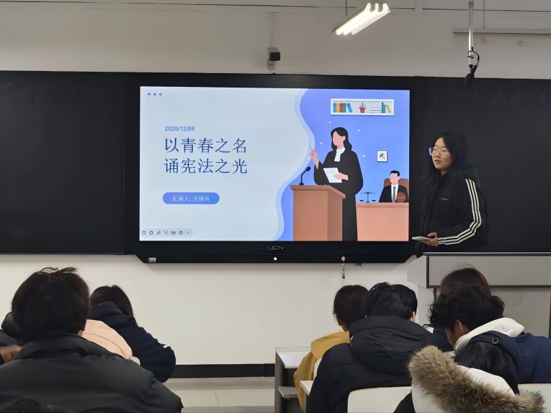 活动期间,各团支部紧扣主题,把握正确政治方向和思想导向,依托多媒体资源开展了形式多样的学习。通过播放法治专题片、展示典型案例PPT等方式,系统阐释宪法的核心要义、历史脉络与现实意义,并融入习近平法治思想的核心内涵,使宪法条文可知可感、深入人心。在交流环节,同学们积极分享学习体会,围绕“青年如何践行宪法精神”展开讨论,在思想碰撞中进一步坚定了法治信仰,明确了新时代青年的使命担当。