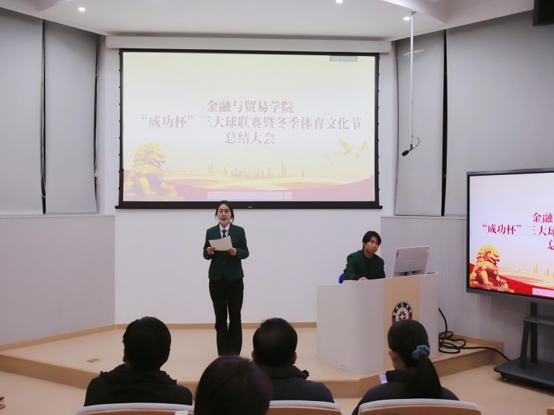 为营造积极向上的校园体育氛围,激发青年团结奋进的青春能量,12月22日,金融与贸易学院“成功杯”三大球联赛暨冬季体育文化节总结大会在1号楼101会议室顺利举行。学院党委书记吕鹏、团委书记兼行政秘书吴森、身体素养提升工程专项负责教师岳婧宇、全体辅导员,与两项赛事参赛学生代表共同参会。大会由学生贺彤莹主持。