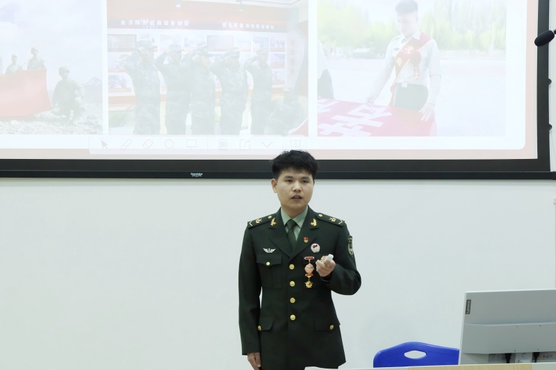 25物流专升本1班退役学生周东昱结合自身军旅经历进行分享。他讲述了从校园到军营的抉择过程,回顾了部队训练的难忘时光,并围绕入伍条件、报名流程、兵种选择、优抚待遇及退役复学等学生关心的政策内容作了详细解读。