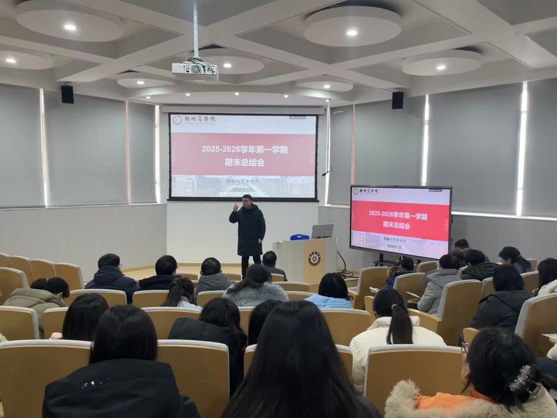 为全面总结本学期的工作成效,科学谋划寒假及下学期的工作安排,确保学院各项工作的顺利推进,1月20日上午,我院于1号教学楼101会议室召开了2025-2026学年第一学期期末总结大会。我院院长梁鹏、党委书记吕鹏、教学秘书张欢琪及我院全体教师、辅导员参加,会议由吕鹏书记主持。