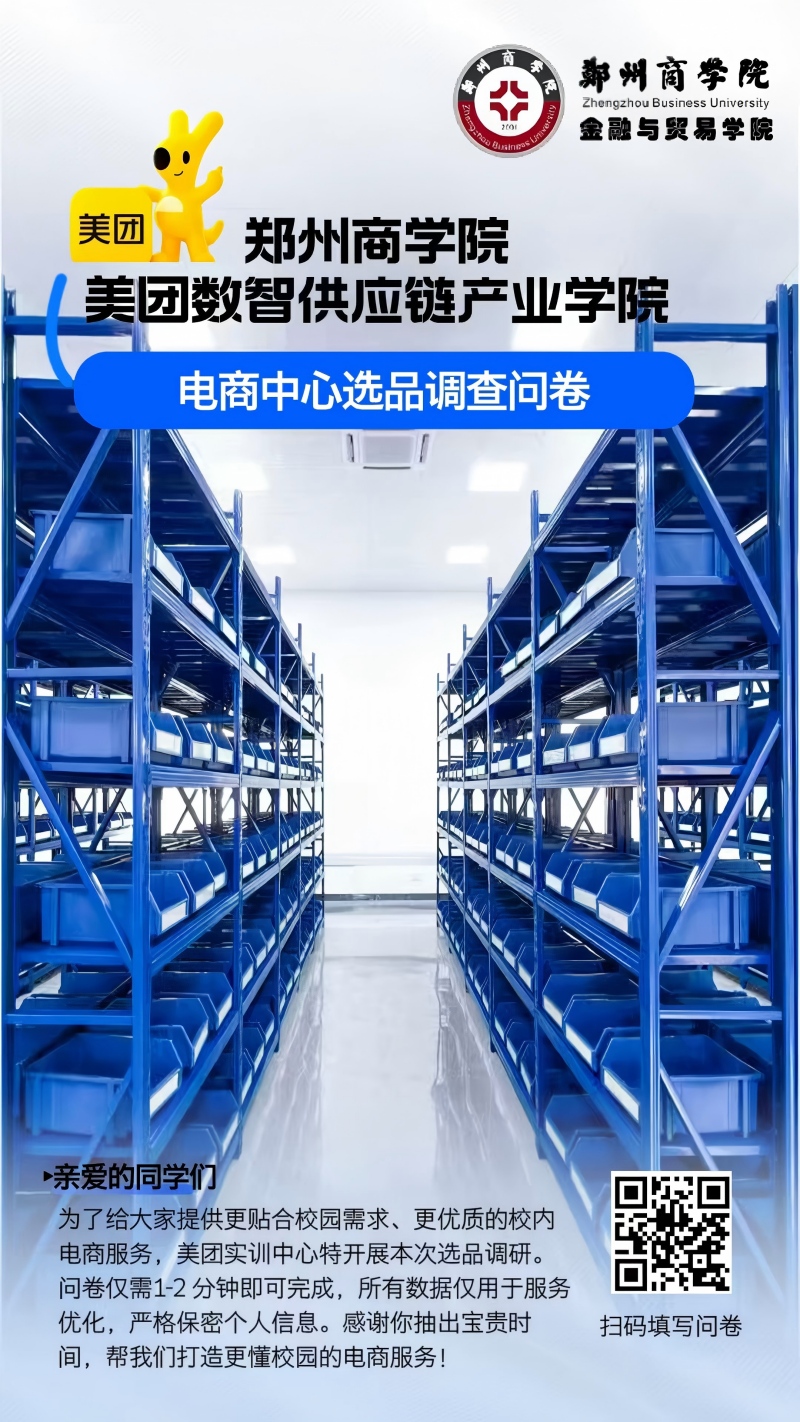 郑州商学院美团数智供应链产业学院,依托美团供应链资源与校园场景优势,聚焦高性价比校园电商服务升级,致力于为师生打造一站式、物美价廉的校园购物体验。此次调研,是我们倾听需求、打造高性价比校园电商的第一步!