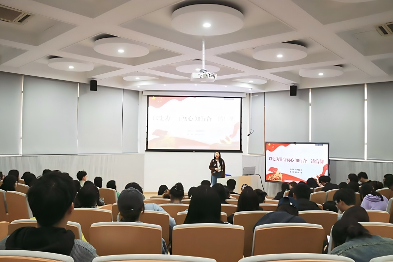 为深入学习贯彻习近平新时代中国特色社会主义思想,强化入党积极分子理想信念教育,夯实党员发展工作基础,3月31日晚,金融与贸易学院在1号教学楼101会议室举行第四十二期入党积极分子培训班第四次党课培训。本次活动以“以史为鉴守初心,知行合一铸信仰”为主题,第四十二期全体入党积极分子参加学习,潘亚萍老师担任主讲。