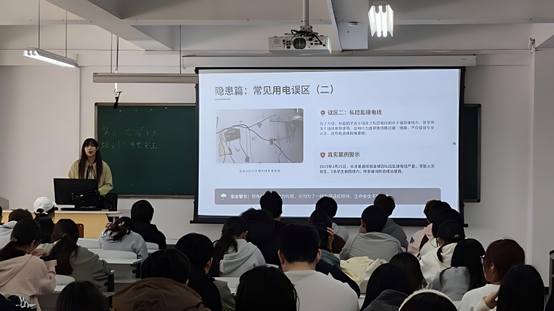 为进一步强化寝室长安全管理责任,筑牢宿舍用电安全防线,切实防范校园宿舍电气火灾事故,保障学生生命财产安全,4月1日中午,金贸学院组织开展寝室长用电安全专题培训,以“隐患排查+规范实操+应急处置”三维培训模式,为寝室长们送上实用的用电安全“必修课”。