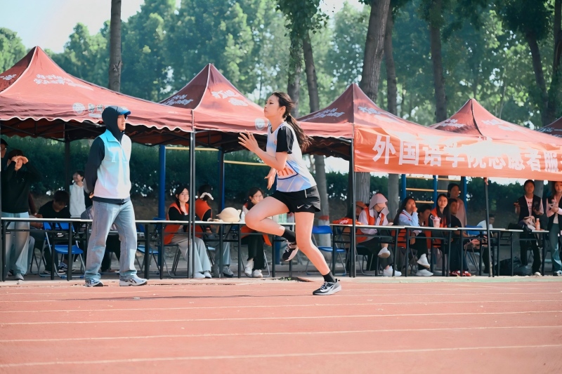田赛赛场同样精彩纷呈、亮点十足。跳高选手蓄力助跑、轻盈腾空,舒展身姿跨越横杆,尽显灵动风采;铅球选手沉心聚力、稳扎马步,奋力挥臂、全力一掷,迸发强劲力量;20人21足跑、袋鼠跳等趣味团体项目温情满满,同学们步调统一、同心同向,彼此扶持、协同共进,在协作与欢笑中,展现金贸学子团结向上的良好风貌。