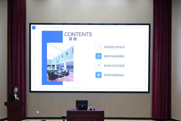讲座围绕四个核心议题展开。首先,张老师以“如何适应大学生活”为切入点,结合生动案例和实际数据,建议新生积极调整心态、主动融入集体、合理规划时间,逐步实现从中学到大学的顺利过渡。她强调,良好的适应能力是大学生成长成才的重要基础。