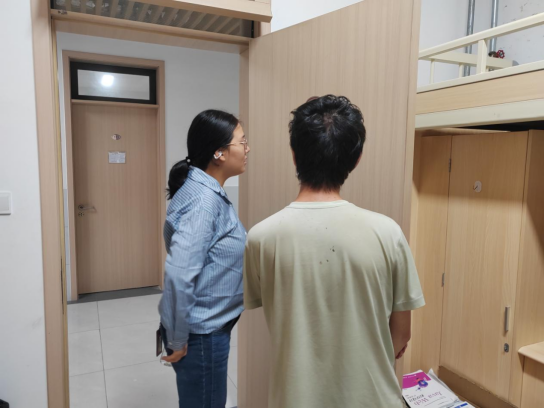 安全排查是此次工作的重中之重。辅导员们对宿舍内的用电设备、消防设施进行逐一细致检查:仔细查看插座是否存在老化破损情况,是否违规私拉乱接电线,严查违规电器;认真检查宿舍内的灭火器是否有效,安全出口标识是否清晰。排查过程中,辅导员们还结合典型安全案例,向同学们面对面普及宿舍安全用电知识和消防安全常识,反复强调“安全无小事,责任大于天”,提醒大家时刻保持安全警惕,提高自我防范能力,坚决杜绝安全隐患。