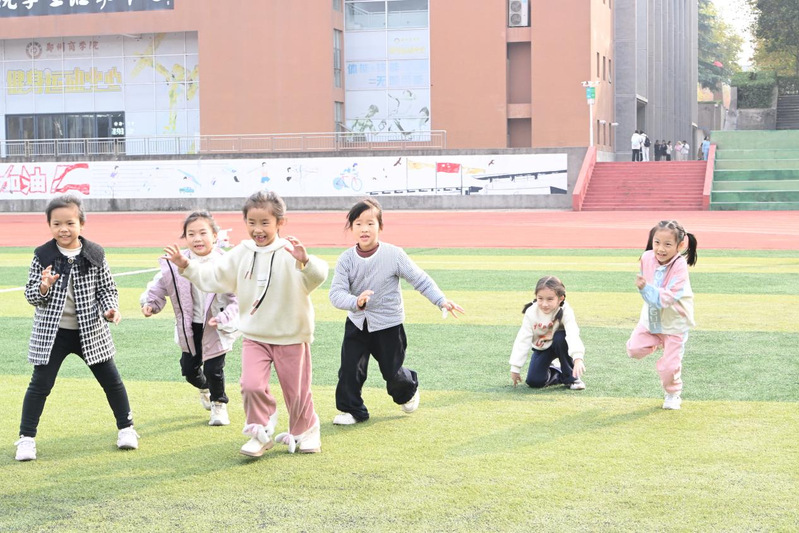活动期间,志愿者们化身“小小向导”,全程陪伴孩子们探秘校园:从东校区广场到现代化体育馆,从藏书丰富的图书馆到寓意深远的兴海桥,再到开阔的体育场与绿意盎然的草坪。在草坪上,志愿者与孩子们、老师一同进行游戏互动,大家在阳光下奔跑、欢笑,操场上充满了童真与活力。同时,志愿者们还贴心地用相机记录下孩子们好奇提问、开心大笑的瞬间,这些照片也成为本次研学活动最珍贵的纪念。