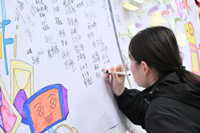 活动现场布置简洁而富有感染力,大厅中央的 “文明上网” 主题展板格外醒目。在志愿者的引导下,同学们有序参与各项互动环节:首先在 “文明上网承诺墙” 上郑重签下自己的姓名,以签名形式践行网络文明责任;随后认真研读公约内容,明确 “不信谣、不传谣、不造谣”“尊重他人、理性发言” 等文明上网核心要求;最后,大家拿起五彩便签,将自己对网络文明的理解、践行网络文明的决心或相关心得一一写下,贴满 “心得留言角”,一张张色彩鲜艳的便签汇聚成文明上网的 “心声墙”,传递着青年学子对清朗网络空间的共同期盼。活动中,同学们踊跃交流,分享自己遇到的网络安全案例和上网经验,不少同学在留言中写道 “网络不是法外之地,文明发言从我做起”“守护网络文明,共建清朗空间”,字里行间洋溢着践行网络文明的自觉与担当。​