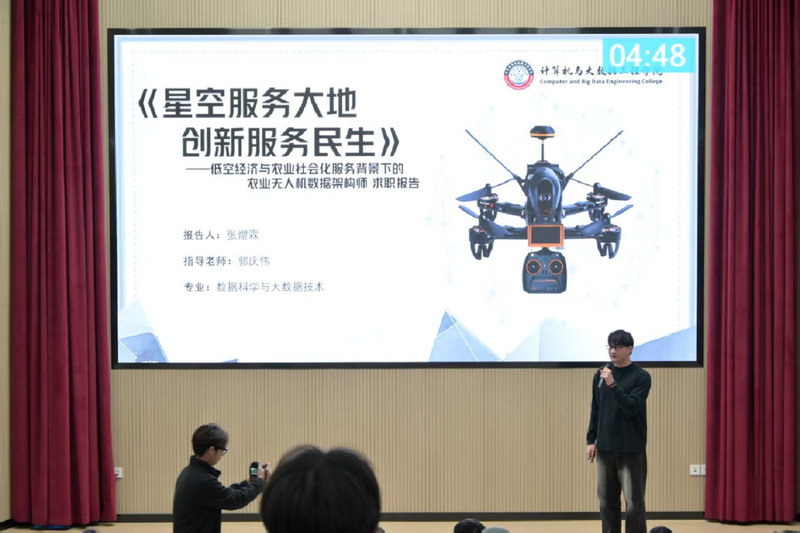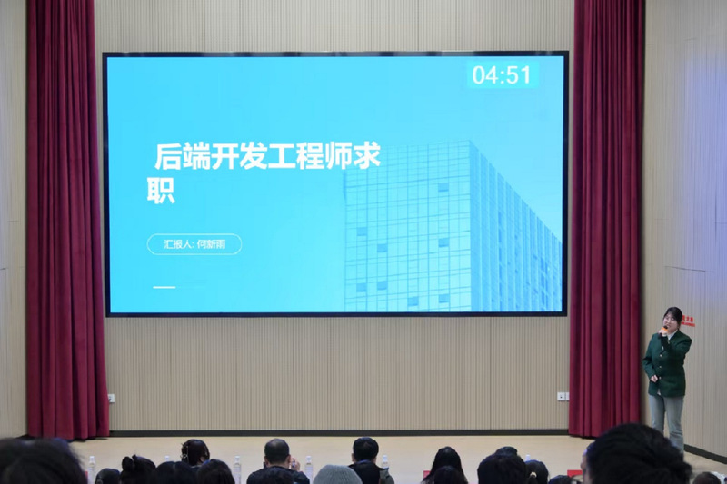 大赛在主持人简短的开场中拉开帷幕。参赛选手依次上台,通过PPT辅助,深入阐述了自己简历的设计思路、内容亮点以及与目标岗位的匹配度。选手们的简历风格各异,有的突出扎实的专业项目经历,有的展现丰富的竞赛成果与社会实践,充分体现了大数据学子务实创新的精神风貌。面对评委们关于职业规划、技能细节、岗位理解等方面的犀利提问,选手们沉着应对,展现了清晰的逻辑与良好的应变能力。