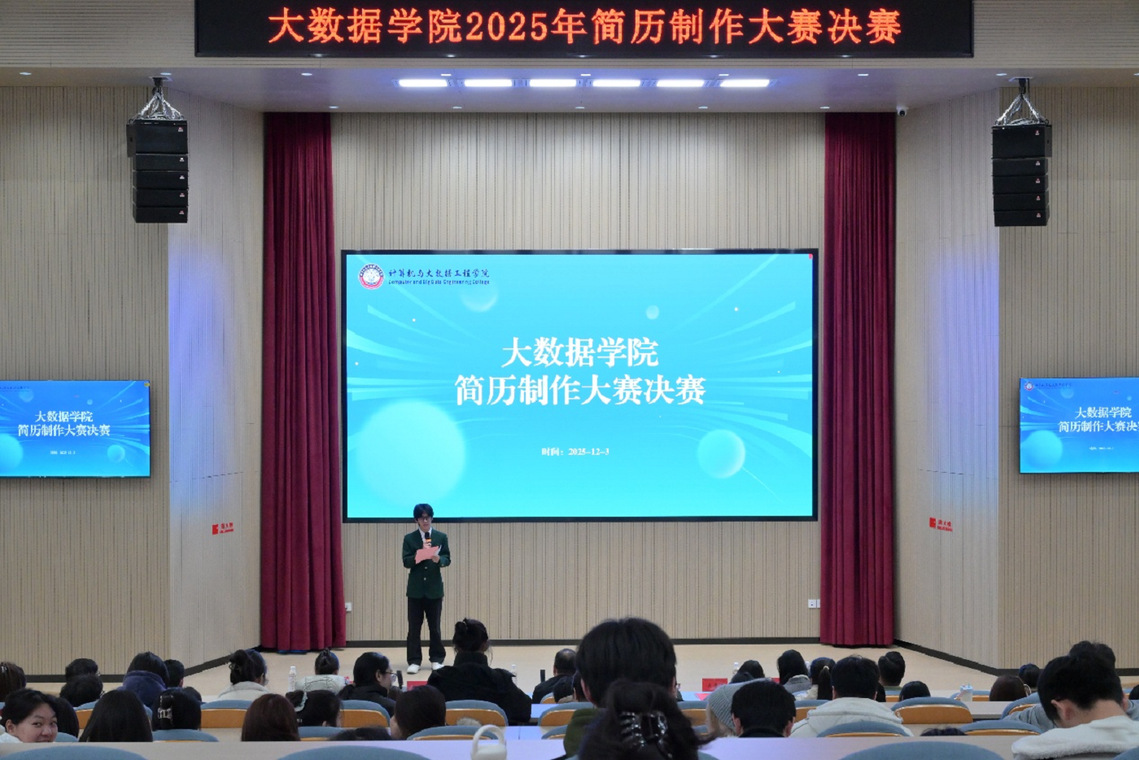 为提升学生职业规划能力与就业竞争力,引导学生打造专业化的职业形象,2025年12月3日,大数据学院在敏行楼学术报告厅隆重举行简历制作大赛决赛。经过前期激烈角逐,十五名选手脱颖而出,齐聚决赛现场,展开最终较量。