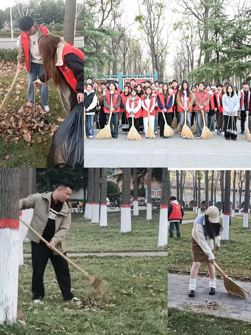 劳动开始前,姜老师明确分工,划定清扫区域,为其准备好扫帚、簸箕、垃圾袋等工具。劳动过程中,同学们热情高涨、分工协作,有的仔细清扫地面落叶与碎石,有的认真清理林间的纸屑、塑料瓶等杂物。大家不怕脏、不怕累,以饱满的热情投入劳动,用实际行动诠释责任与担当。经过近两小时的辛勤付出,外语楼北侧区域干净整洁、焕然一新,为师生出行创造了舒适的环境。