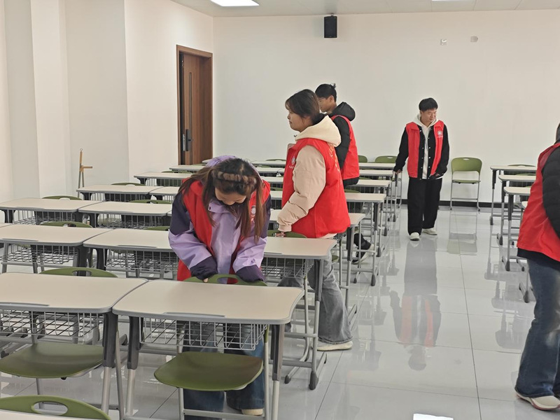 为深化劳动教育实践成效,营造整洁有序的教学环境,11月9日,我院组织开展教学楼卫生专项检查活动。本次检查由我院劳动教育负责人姜老师牵头,二十余名学生志愿者共同参与,以“全覆盖、无死角、重实效”为原则,对教学楼公共区域及教室环境进行全面排查。