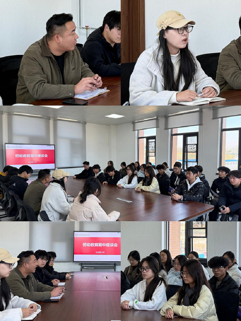 11月20日,我院举办2025-2026学年劳动教育期中座谈会,参会人员有团委书记张培,劳动教育专项负责人姜辰老师,24级劳动检查组成员及生活部成员共20余人。会上,姜老师结合近期劳动教育工作实际推进情况,对以往工作进总结复盘,既肯定了在园区环境维护、基础劳动习惯培养等方面取得的成效,也正视了近期劳动活动课间环保不到位等突出问题。最后,张书记立足于学生劳动素养全面提升的核心目标,对前期劳动教育工作进行系统梳理与精准点评,同时强调我院将持续丰富劳动教育内容载体,健全全员参与、全程监督的劳动育人机制,着力培养学生崇尚劳动、热爱劳动、勤于劳动的优良品质。