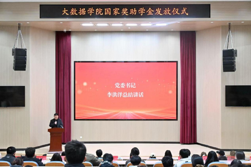 为扎实推进资助育人工作,充分发挥奖助学金的激励作用,大数据学院于11月27日在敏行楼报告厅举行2025年度国家奖助学金发放仪式。学院党委书记李洪洋、校学生资助中心陈梦雪老师、团委书记张培及全体辅导员老师与获奖学生代表共同参加。