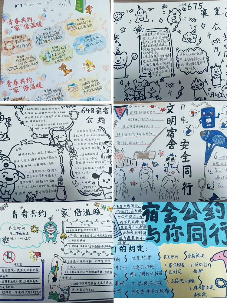 本次大赛面向我院全体25级学生宿舍,旨在鼓励同学们以宿舍为单位,共同商讨、制定并创意设计一份专属的“宿舍公约”。公约内容可涵盖作息时间、内务卫生、安全用电、学习氛围、人际关系、文化活动等多个方面,形式不限,鼓励图文并茂、富有创意。这些作品,不仅明确了行为规范,更折射出同窗之间的深厚情谊,映照了同学们对美好宿舍生活的向往与追求。