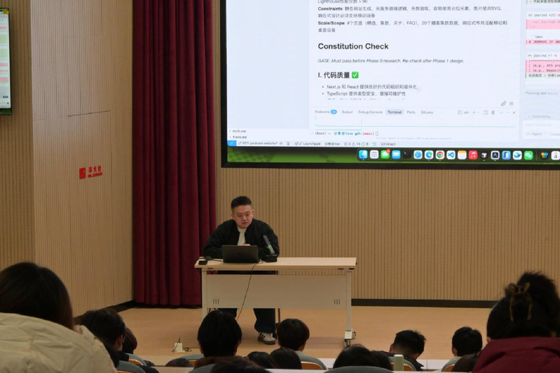 针对同学们普遍关心的能力培养问题,赵晨晰提出 “三重修炼:面向未来的核心竞争力”。即重构学习重心:从“记忆语法”转向“培养系统思维与架构设计能力”;掌握人机协作:学习与AI高效沟通、评估与引导其输出,将其转化为解决问题的能力;拓展跨界认知:主动融合产品思维、设计原理与行业知识,构建“技术+领域”复合知识体系。 他建议同学们在夯实计算机基础的同时,积极关注大模型原理、Prompt工程、AI应用开发等前沿方向,并通过参与开源项目、技术竞赛与实习实践,实现理论与能力的同步提升。