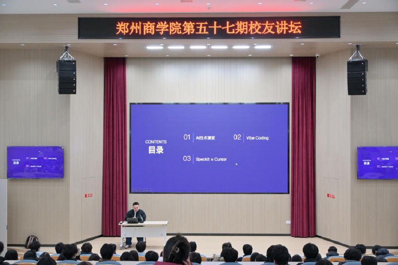 为帮助同学们紧跟技术浪潮、把握行业动向,1月4日,大数据学院特邀2022届优秀校友、AI领域资深工程师赵晨晰入校开展第五十七期校友讲坛,赵晨曦以“AI Coding:技术演进与范式变革”为主题,带来了一场兼具深度与前瞻性的分享。本次活动通过系统梳理AI编程发展脉络,结合行业实践与趋势洞察,为在校学子绘制了一幅清晰的技术演进与能力成长图谱。