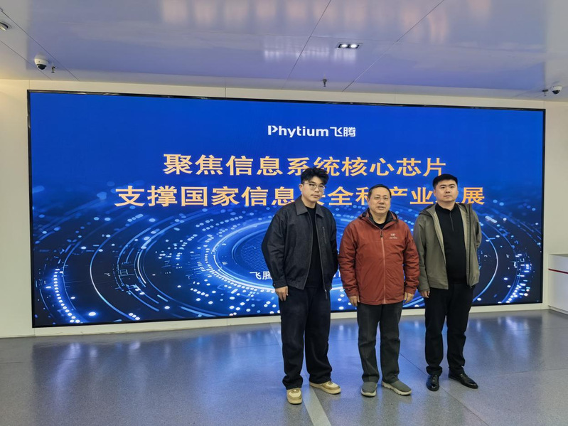 3月19日上午,考察组首先抵达飞腾公司,实地参观企业展厅,详细了解企业发展历程、核心技术优势及自主算力芯片产品体系,直观感受国产芯片领域的技术突破与发展成果。随后,双方开展交流座谈,围绕国产芯片研发、算力技术创新、产学研协同等议题深入交流,重点学习企业在技术研发、成果转化等方面的先进经验。