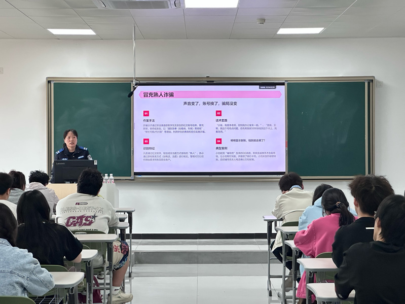 武旭珂警官结合多年反诈一线经验,用通俗语言为同学们拆解电信网络诈骗套路。她系统讲解诈骗定义、类型及危害,以校园高发的刷单返利、虚假贷款、冒充客服、交友诱导等真实案例,剖析诈骗分子利用贪利、恐惧、从众、同情心理行骗的逻辑。同时,武警官区分“主动犯罪”与“被动犯罪”边界,警示拉群引流、出租出售“两卡”、扫码领礼品等行为易触犯帮信罪。并围绕“不轻信、不转账、不泄露、多核实”的“三不一多”原则,传授防骗技巧,引导大家安装国家反诈中心APP。