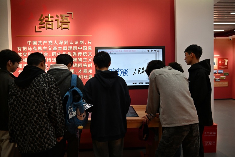 场馆参观体验结束后同学们反响热烈、感触颇深,主动在场馆留言区签名互动。有学生表示:“以往学习马克思主义相关理论多是抽象认知,此次在展馆内的沉浸式体验,让我真正触摸到真理的实践温度,对‘真理指引实践’的内涵有了具象理解。”还有学生谈到:“此次场馆参观并非简单的场景体验,而是一次深刻的思想赋能,后续将把感悟转化为学习动力,以务实行动践行信仰,让真理力量指引成长。”学生们的真挚反馈,充分印证了“场馆里的思政课”有效实现了从“视觉感知”到“思想认同”的跨越,育人成效显著。