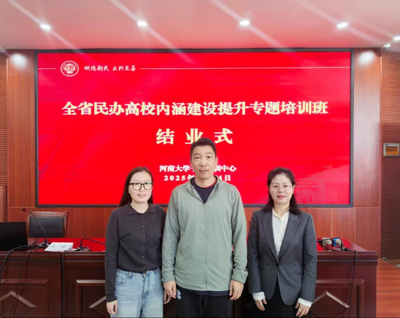 9月22—24日,全省民办高校内涵建设提升专题培训班在河南大学干部培训中心举行,来自全省的55所民办高校参加了此次培训,河南省教育厅政策法规处(民办教育处)处长徐军保、一级主任科员何剑出席。我校副校长刘升阳、商务英语教研室主任葛莹辉、环境设计专业教师武钾赢参加本次培训。