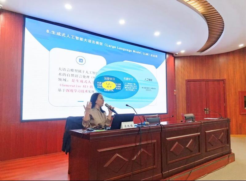 培训会上,河南省教育信息化发展研究中心副主任梁林梅教授作了主题为“人工智能赋能教育教学高质量发展”的专题讲座,围绕认识生成式人工智能、生成式人工智能教育应用的国际进展、如何应对生成式人工智能三个方面进行阐述,并通过分享高校智慧教育典型案例分析了如何利用数字技术推动学校内涵建设。